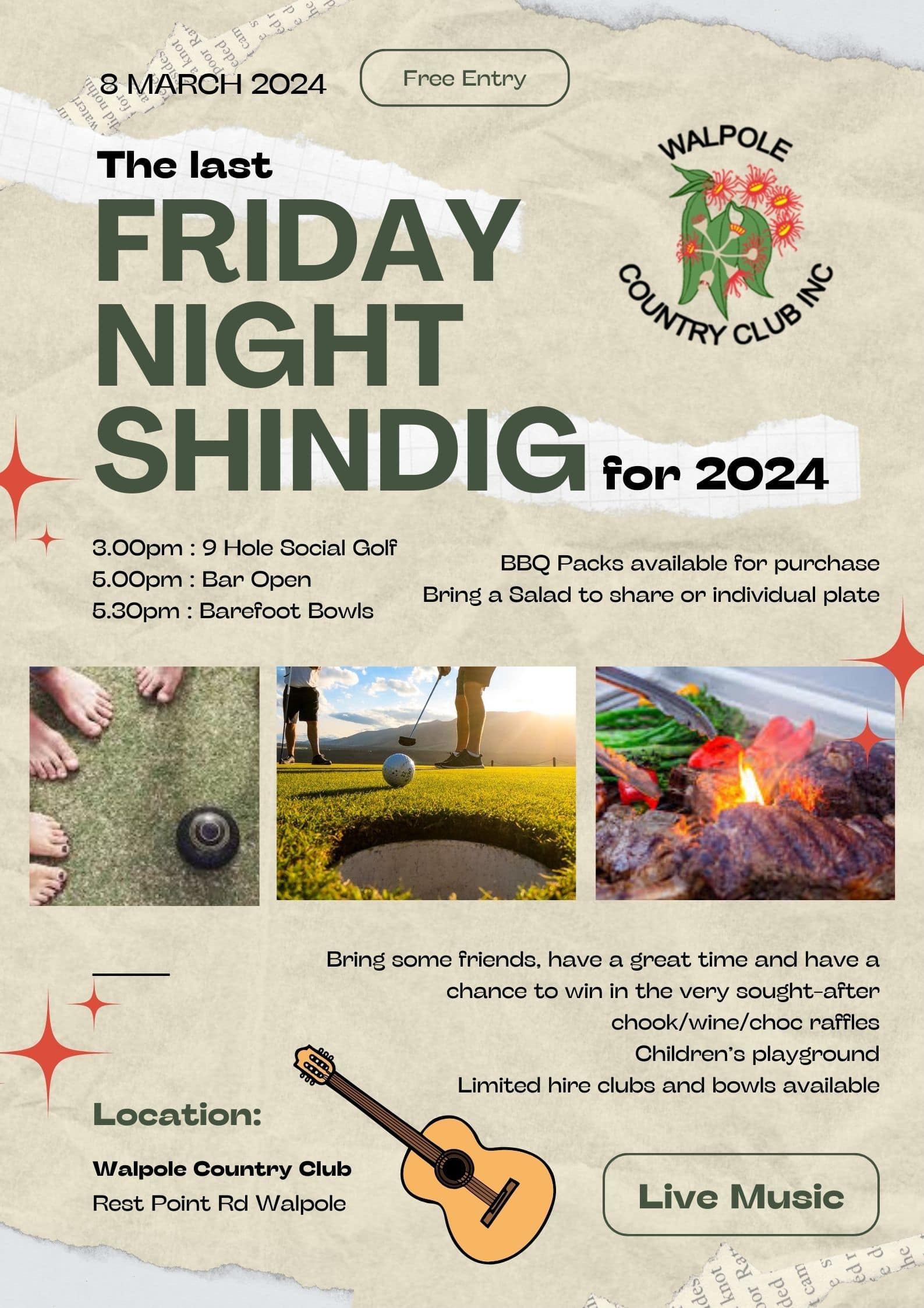 - 3pm – 9 Hole Social Golf