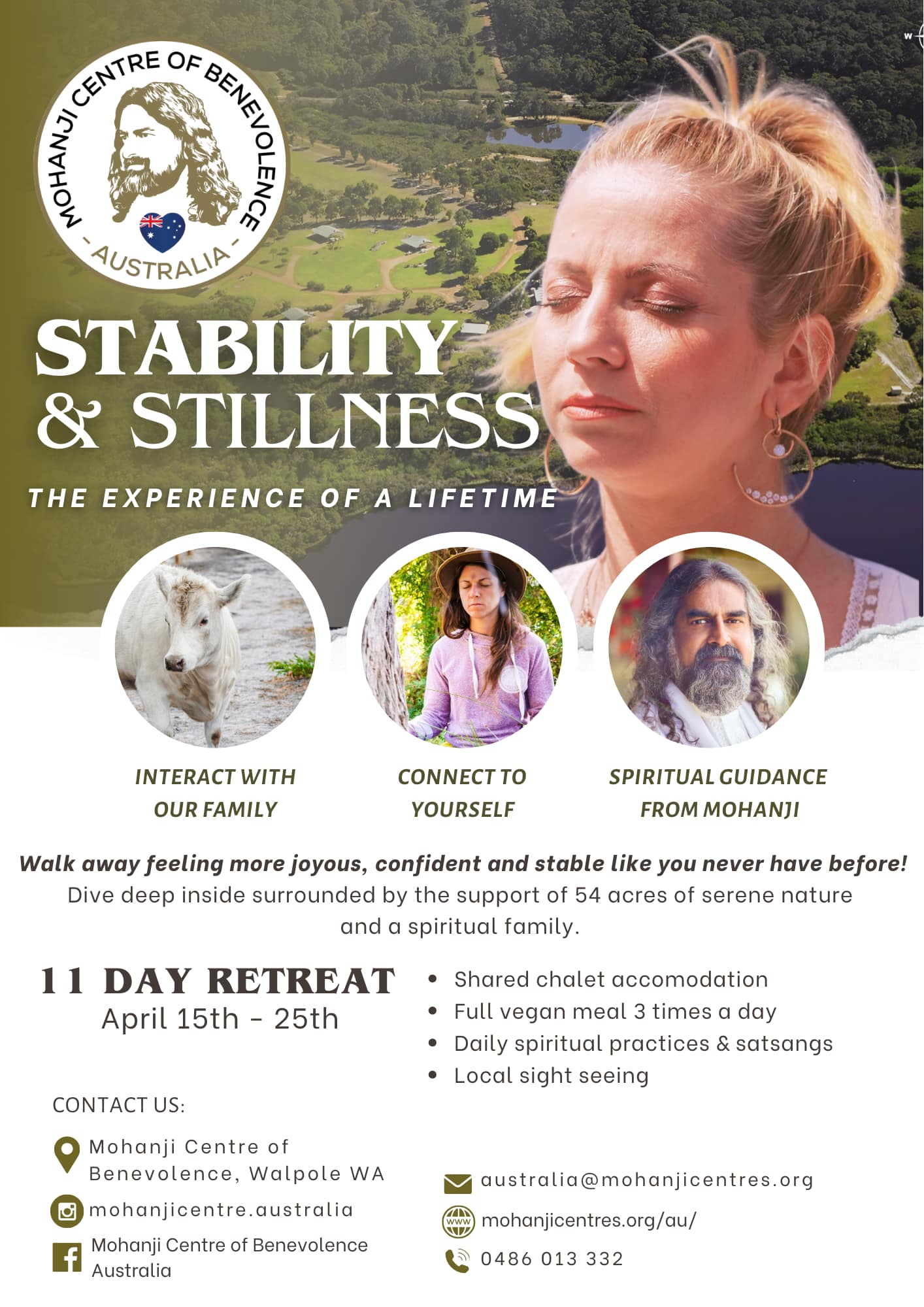 Welcome to the “Silence and Stability” retreat at the Mohanji Centre of Benevolence in Walpole, WA.